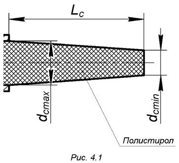 Проектируемая антенная решетка строится на базе диэлектрических стержневых антенн и для дальнейшего расчета диаграммы направленности всей решетки нам необходимо определить диаграмму направленности одиночного стержневого диэлектрического излучателя. В ходе определения его конкретных параметров стоит заметить, что ширина диаграммы направленности одиночного излучателя будет влиять на амплитуду главного лепестка решетки при сканировании. Исходя из этого, ширина диаграммы направленности основного лепестка одиночного излучателя по уровню 0, 707 от максимума, создаваемой им напряженности поля должна быть как можно ближе к 90°. Тогда при максимальном угле сканирования в 50°, амплитуда главного лепестка решетки уменьшится не более чем в 0, 707 раз. Выберем конусообразную конструкцию диэлектрического излучателя, упрощенный вид которого показан на рисунке 4.1