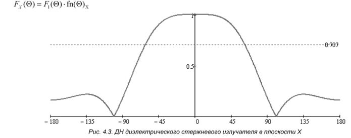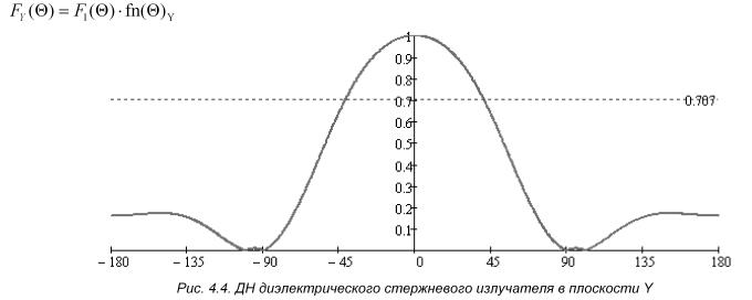Диаграмма направленности всего стержневого излучателя определяется как произведение диаграммы направленности элементарного излучателя
