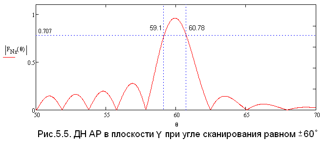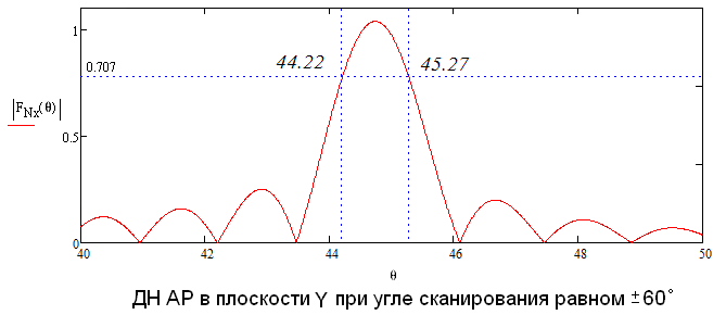 Вид диаграммы направленности антенной решетки в плоскости Y при угле сканирования равном ± 60° (рис. 5.5)