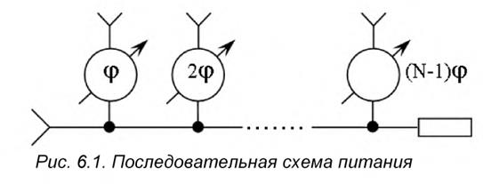 Делители мощности выполняются по схемам последовательного и параллельного деления мощности. При последовательном делении мощности (рис. 6.1) нагрузка может быть включена в боковые ответвления фидерного тракта.