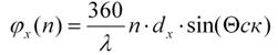 необходим фазовый сдвиг φ между двумя произвольными излучателями, отстоящими друг от друга на d в плоскости сканирования, который определяется по формуле (Л5, стр.441):