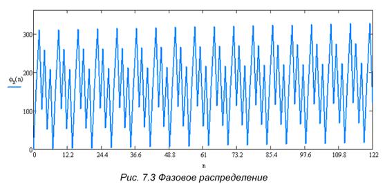 Чтобы компенсировать фазовый набег, возникающий в схеме питания, определим фазовое распределение в решетке как разность φx(n)-φ`x(n), тогда фазовое распределение будет иметь вид: