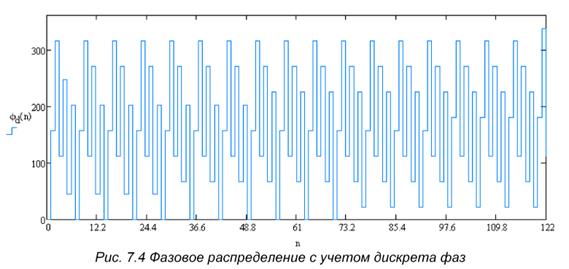 Так как выбранный тип фазовращателя способен обеспечить только дискретный шаг фазы равный 22, 5°, то фазовое распределение будет иметь вид :