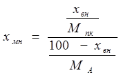 3. Начальная относительная мольная концентрация поглощаемого компонента в абсорбенте при входе в абсорбер: