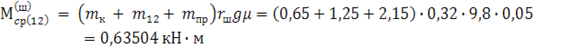 Эквивалентный статический момент на канатоведущем шкиве за время работы в цикле (с учетом влияния потерь в редукторе) составит: (1)