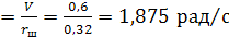 Угловая скорость канатоведущего шкива: