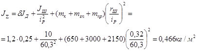 | Момент инерции канатоведущего шкива, кг-м2 | Jш | 10 | |