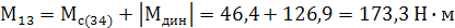 где mC(max)=173,3 - максимальный по модулю статический момент на валу двигателя в относительных единицах (см. нагрузочную диаграмму двигателя).