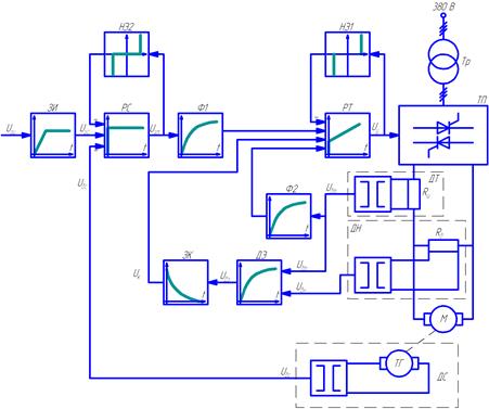 · расчет элементов системы автоматического управления электроприводом - регулятора тока, звеньев цепи компенсации ЭДС, регулятора скорости, задатчика интенсивности.