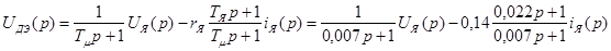 При синтезе регулятора скорости считаем, что момент статического сопротивления равен нулю (режим идеального холостого хода двигателя). При условии mC=0 объект управления в контуре скорости представляется одним звеном: