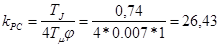 Получаем передаточную функцию П-регулятора. Коэффициент передачи регулятора скорости согласно находится по формуле