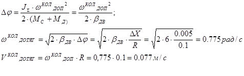 Рассчитаем скорость дотягивания, при которой будет обеспечиваться нужная ошибка позиционирования 0,005 м