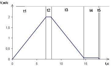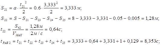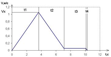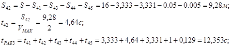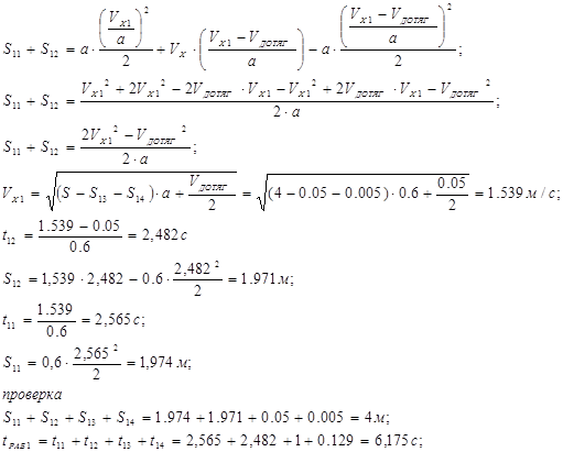 Определим параметры рабочего цикла при прохождении 1-ого участка без остановки (S=4 м):