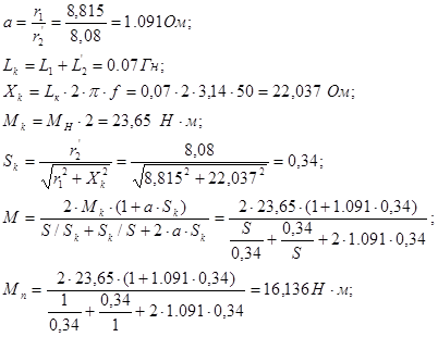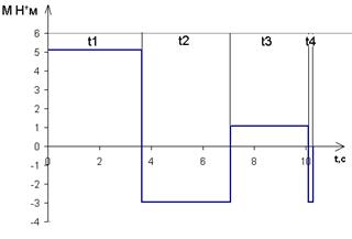 При пуске двигателя на минимальную скорость, время пуска tп существенно меньше, чем на номинальную скорость. Из-за этого пусковой момент не успевает выйти на устанавившееся значение и сразу же изменяется до значения Mст1.