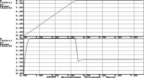 Пуск электропривода на минимальную скорость (wmin =0.1*wnom = 8.8 рад/с)