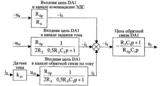 Для обеспечения единичных коэффициентов передачи в каналах задания тока, обратной связи по току и компенсации ЭДС должны выполняться условия