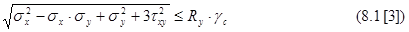 где σx и σy — нормальные напряжения в кольцевом и меридиональном направлениях;