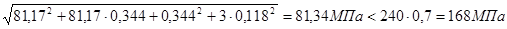 | Напряжения в поясе σ, МПа | 81,3 | 159,2 | 143 | 116 | 89,6 | 65,3 | 40,4 | 15,2 |