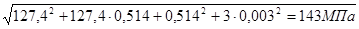 Продольное и кольцевое сжимающие напряжения в элементе 949 (приложение 2) от постоянной, снеговой нагрузок и вакуума (загружения 1, 4, 5) соответственно равны σ1 = 1,41 МПа и σ2 = 0,5 МПа.