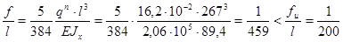 Максимальный прогиб продольной балки от нормативных нагрузок составляет (см. приложение 1)