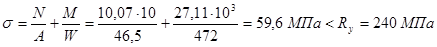 Напряжения в балке проверяем как во внецентренно-растянутом элементе по формуле