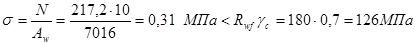 γс — коэффициент условий работы, равный для нижнего пояса — 0,7, для остальных поясов — 0,8;