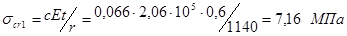 При r/t = 1140/0,6 = 1900 > 300 коэффициент ψ не учитывается, а коэффициент