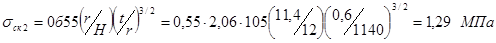 При Н/r = 12/11,4 = 1,05 σcr2 определяем по формуле