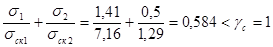 где σ1 и σ2 — соответственно абсолютные значения расчетных продольных и кольцевого сжимающих напряжений;