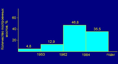 Рисунок 1. Годы постройки мостов, эксплуатирующихся в настоящее время