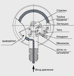 Трубчатые пружины представляют собой кругообразно согнутые трубки с овальным поперечным сечением. Давление измеряемой среды воздействует на внутреннюю сторону этой трубки, в результате чего овальное поперечное сечение принимает почти круглую форму. В результате искривления пружинной трубки возникают напряжения в кольцах трубки, которые разгибают пружину. Незажатый конец пружины выполняет движение, пропорциональное величине давления. Движение передаётся посредством стрелочного механизма на шкалу. Для измерений давления до 40 или 60 бар применяются, как правило, согнутые с углом витка около 2700, кругообразные пружины. Для измерений давления с более высокими значениями используются пружины с несколькими лежащими друг над другом витками и одинаковым витковым диаметром (винтовая пружина) или со спиралеобразными витками, лежащими в одной плоскости (плоская спиральная пружина). Трубчатые пружины обладают сравнительно низким перестановочным усилием. Поэтому их защита от перегрузки может проводиться только с ограничениями. Показания лежат в диапазоне от 0 ...0,6 до 0 ... 7000 бар при точности показаний (классе) от 0,1 до 4,0%.