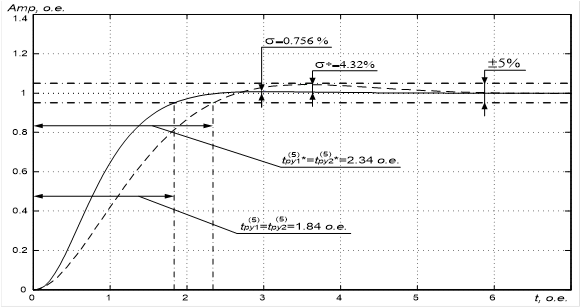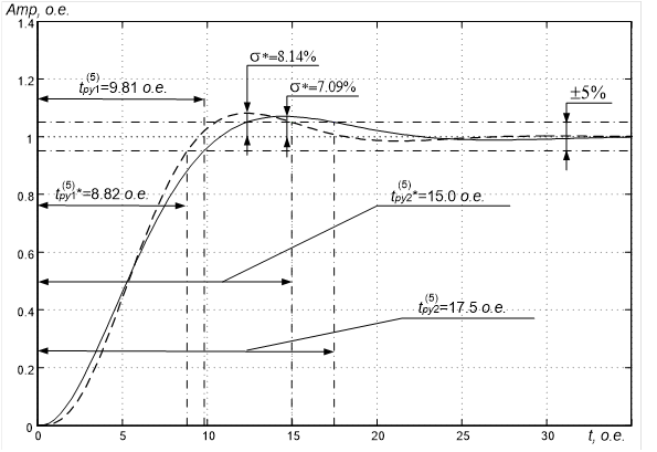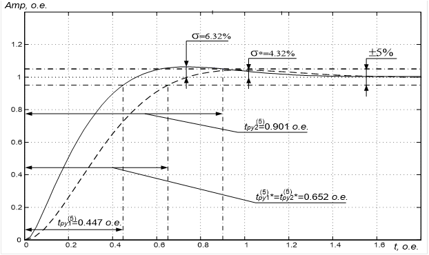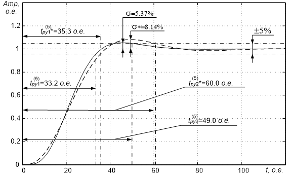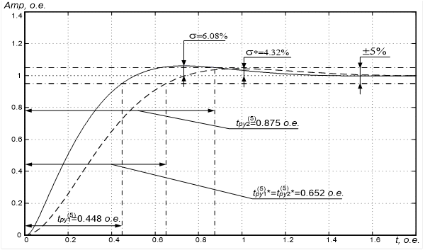 Рисунок 25 – График расчёта переходных процессов в оптимизированном контуре управления частотой вращения ротора ![]()