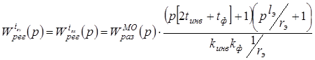 В итоге для передаточной функции регулятора получаем следующее выражение: