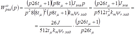 Тогда итоговое выражение для передаточной функции регулятора в контуре скорости получаем в следующем виде: