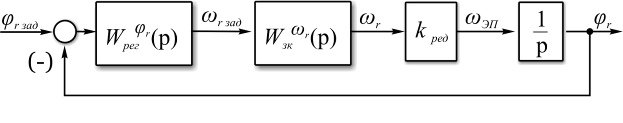 Согласно иерархии подчинённого регулирования для контура управления частотой вращения внешним является контур управления положением. При оптимизации контура управления положением предполагаем использование настройки на симметричный оптимум.