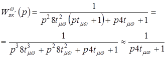 В стремлении понизить порядок передаточной функции объекта управления допустимо не учитывать постоянные времени высших порядков. Применительно к замкнутому контуру скорости