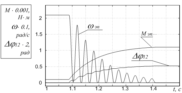 Рисунок 31 – Графики переходных процессов в системе нагрузочного моментного ЭП с векторным управлением при учёте нелинейностей для случая работы в режиме движения