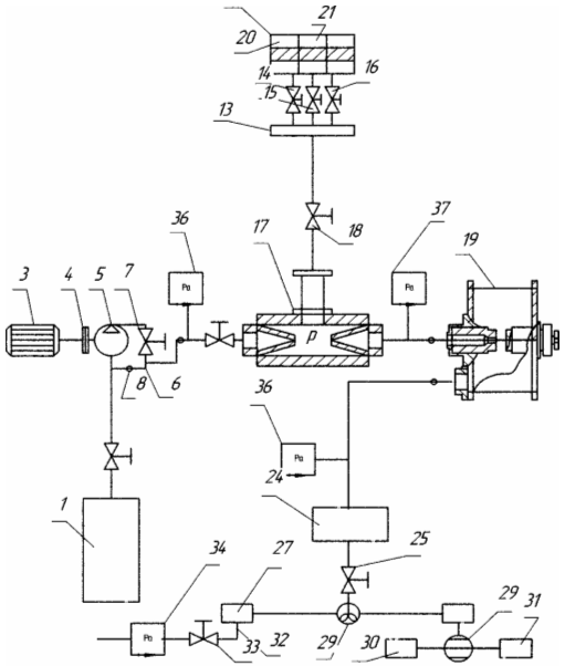 На нагнетающем трубопроводе после насоса рекомендуется установить манометр для измерения давлении перекачиваемой жидкости, а на всасывающем трубопроводе перед кавитатором -мановакууметр.