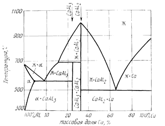 Рис. 5.2. Диаграмма состояния сплавов системы Al - Са (фазовый анализ)