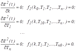 Решив систему уравнений, получим оптимальные значения параметров k0, T10, …, Tn0.