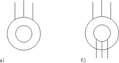 У фазного ротора обмотка выполняется трёхфазной, аналогично обмотке статора, с тем же числом пар полюсов. Витки обмотки закладываются в пазы сердечника ротора и соединяются по схеме звезда. Концы каждой фазы соединяются с контактными кольцами, закреплёнными на валу ротора, и через щётки выводятся во внешнюю цепь. Контактные кольца изготавливают из латуни или стали, они должны быть изолированы друг от друга и от вала. В качестве щёток используют металлографитовые щётки, которые прижимаются к контактным кольцам с помощью пружин щёткодержателей, закреплённых неподвижно в корпусе машины. На рис. 2.5 приведено условное обозначение асинхронного двигателя с короткозамкнутым (а) и фазным (б) ротором.