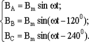 Магнитные индукции полей, создаваемые каждой фазой, как и напряжения, подведённые к этим фазам, являются синусоидальными и отличаются по фазе на угол 120°.