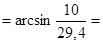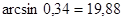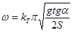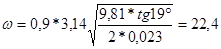 Рассчитаем оптимальную угловую скорость и частоту вращения вала щековой дробилки, если ход щеки 23 мм = 0,023м, угол между щеками 19º, коэффициент торможения материала 0,8.