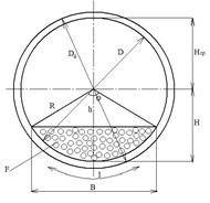 Эффективность шаровых мельниц зависит от степени заполнения барабана мелющими телами, которая характеризуется коэффициентом загрузки, представляющим собой отношение площади поперечного сечения слоя загрузки в спокойном состоянии к площади поперечного сечения барабана, и рассчитывается по формуле