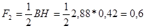 Площадь кругового сегмента равна разности площади кругового сектора F1 и площади равнобедренного треугольника F2 .