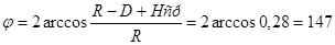 Рассчитаем угловую и окружную скорости и частоту вращения барабана шаровой мельницы для сухого помола при гладкой футеровке и при футеровке бронеплитами с продольными ребрами, а также для мокрого помола и определить коэффициент загрузки, если барабан мельницы загружен мелющими телами до уровня 1920 мм = 1,92 м., внутренний диаметр нефутерованного барабана 2,7м=2700 мм, угол α =51.9º.