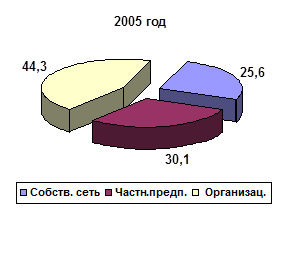 Предприятие имеет собственные стационарные торговые точки (магазины).
