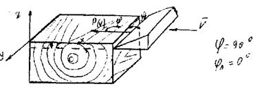 Для более полной характеристики резания вводится угол φ между вектором скорости резания и направлением волокон.