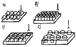 В другом случае путем пошагового вращения поддона (рис. 2, а, г) детали фиксируются каждый раз в определенном положении для взятия их роботом или же сама рука робота имеет пошаговое программное перемещение (рис. 2, б, в) при неподвижном поддоне.