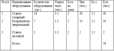 2.3 Определение количества вспомогательных рабочих, ИТР, СКП, МОП